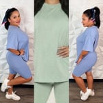 Top is oversized bottom is biker short and does stretch